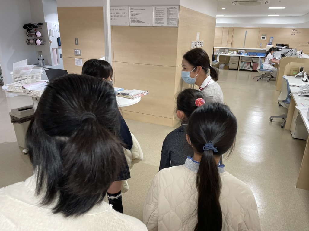 病棟やナースステーションでは、看護師さんたちが忙しく動きながらも、患者さん一人ひとりに声をかけていました。「急いでいても、ていねいさを忘れない」ことが大事だと感じました。