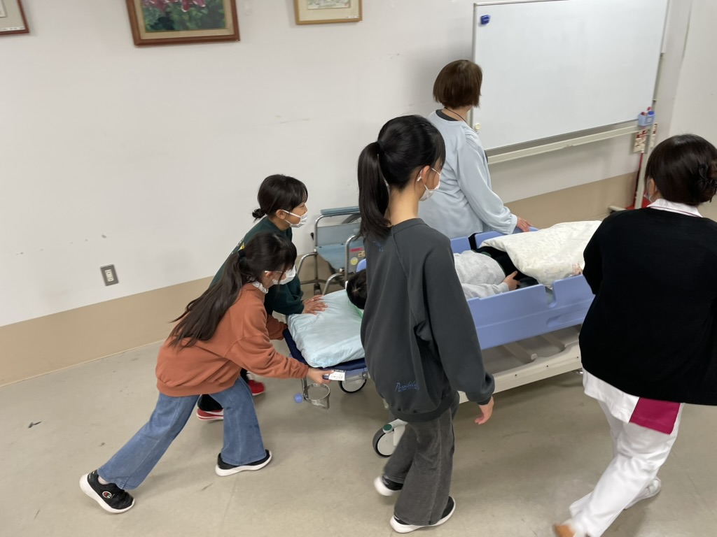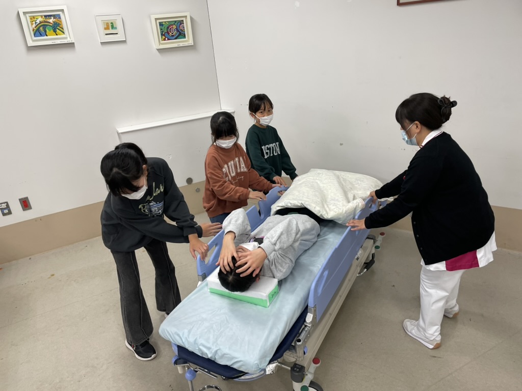 ストレッチャーや車いす体験では、動かす側も乗る側も不安になることを実感しました。「大丈夫ですよ」と声をかけることの大切さがよくわかりました。