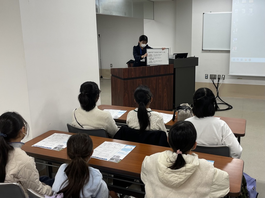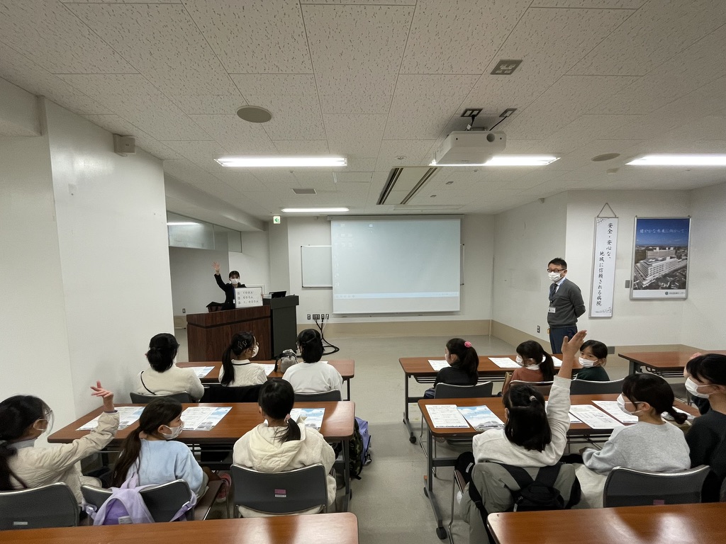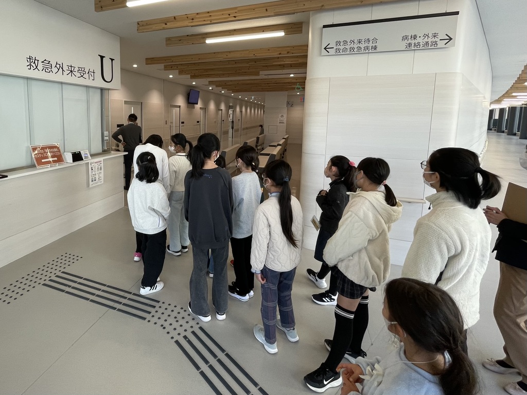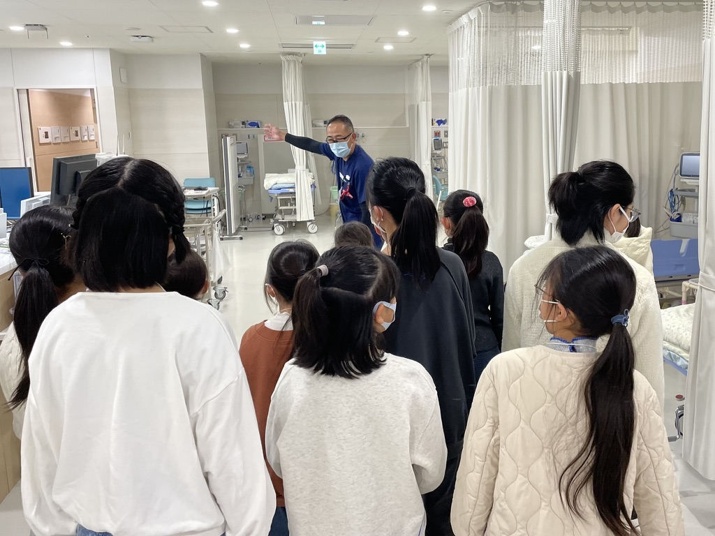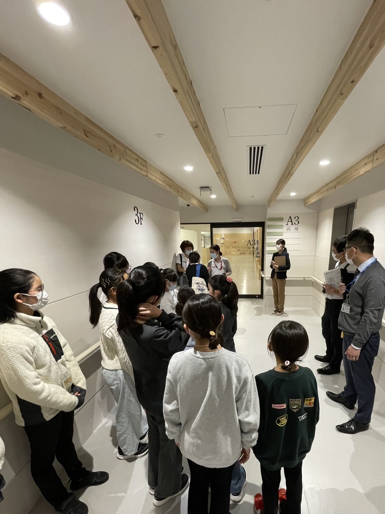 最初に、浜松医療センターが地域の人たちの命と健康を守る大切な役割をもっていることを教えてもらいました。テレビで見る病院とはちがい、「毎日の生活を支える場所」だと知り、少し背すじがのびました。はじめに概要説明があり、1000人もの人が働いていると知り、びっくり!