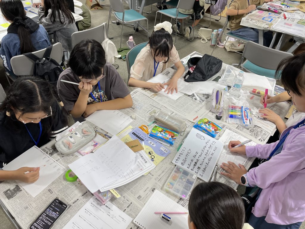 選挙と並行して、店舗づくりもスタート!看板作りなどがスタート!体を動かす作業が増えて、みんないつも以上にイキイキしていました。各お店には、中学生高校生の応援隊がサポートについて一緒に参加しました。