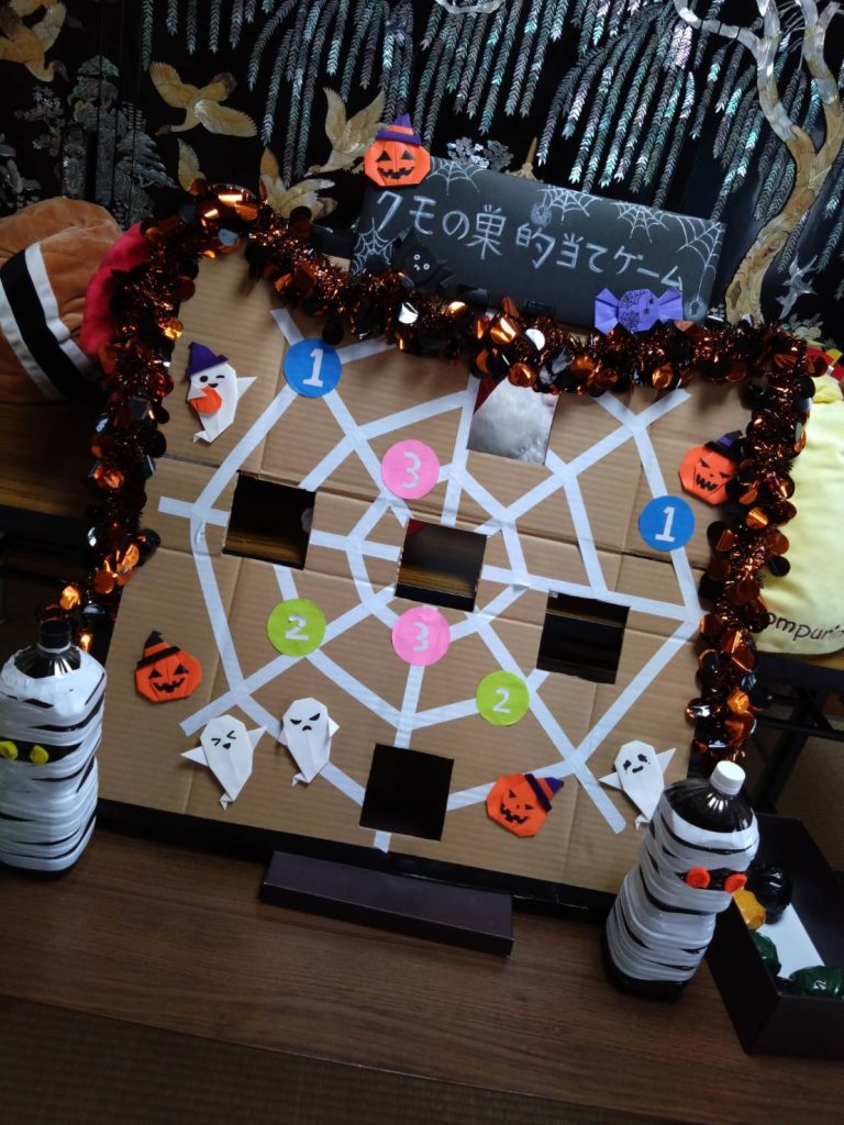 お化け屋敷や蜘蛛の巣的当てゲーム、おばけ輪投げや蜘蛛の巣綿菓子、ポップコーンと盛りだくさん。皆思考を駆使して作ってくれました。